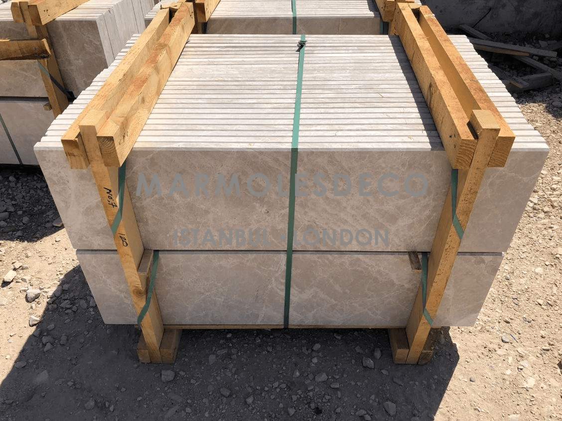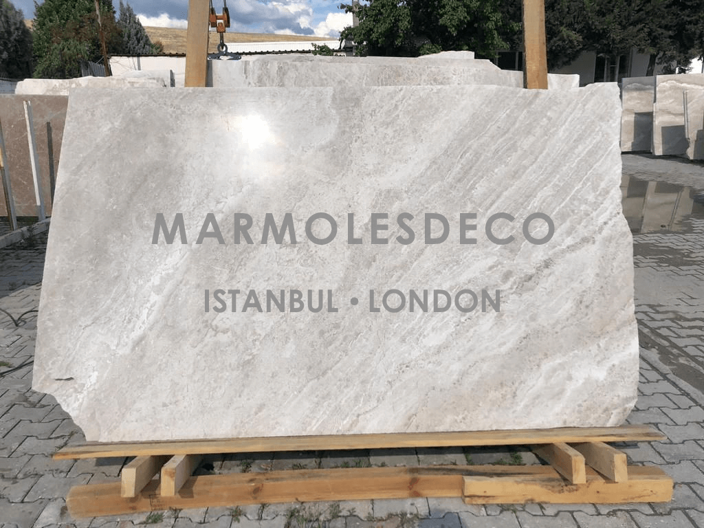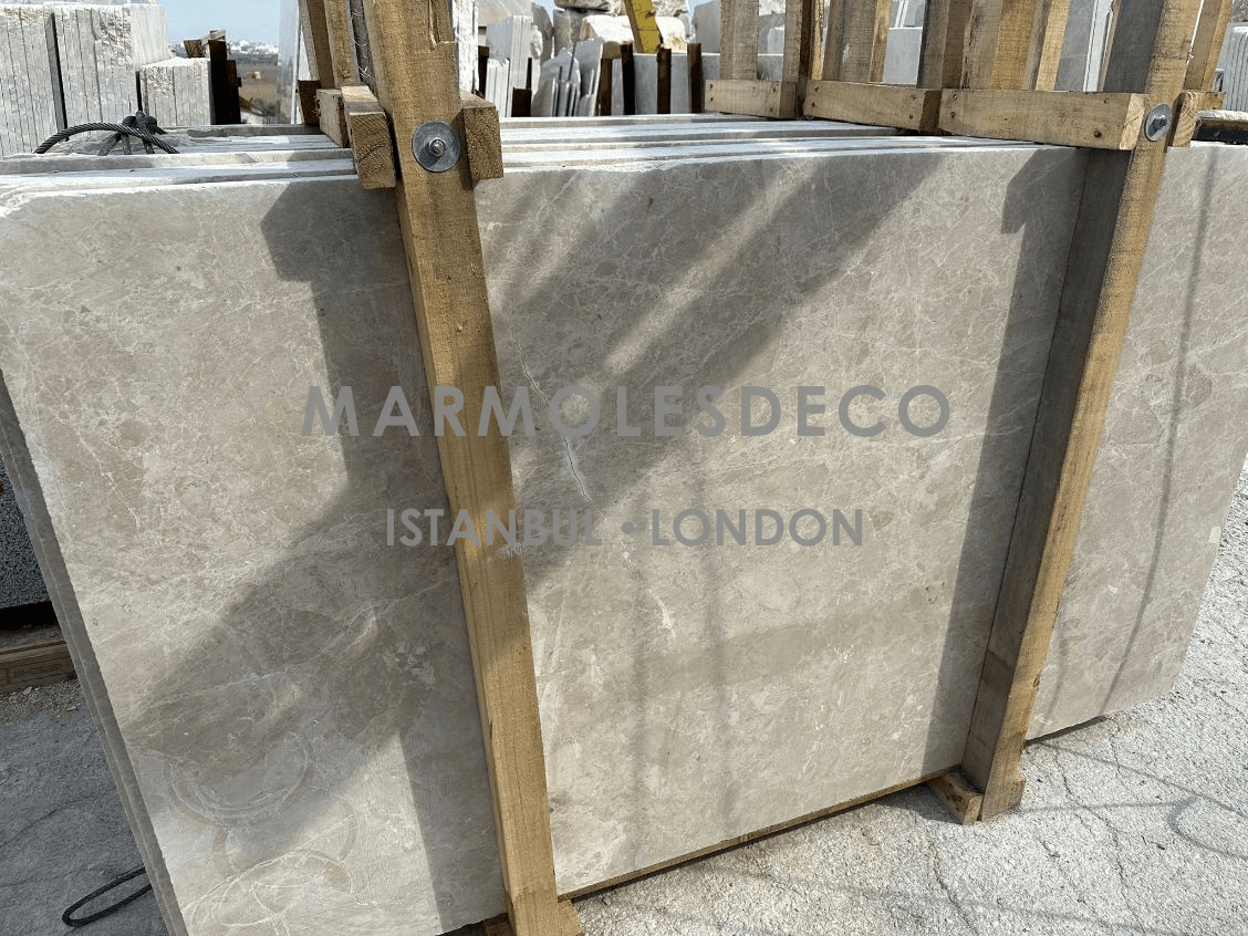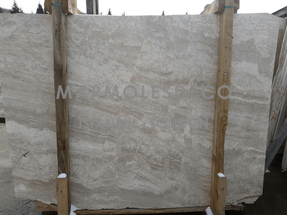 Diana Royal marble is a high-quality natural stone renowned for its captivating beauty and distinctive characteristics, characterized by its creamy beige background, interlaced with delicate veins of warm brown and gray, creating a harmonious and luxurious aesthetic that adds a touch of sophistication to any interior or exterior design project. Its polished surface reflects light, enhancing the stone's inherent elegance, while its durability and versatility make it suitable for various applications, including countertops, flooring, wall cladding, and more. Whether used in traditional or contemporary settings, Diana Royal Marble exudes a timeless charm that elevates the overall ambiance and adds a touch of opulence to any space.