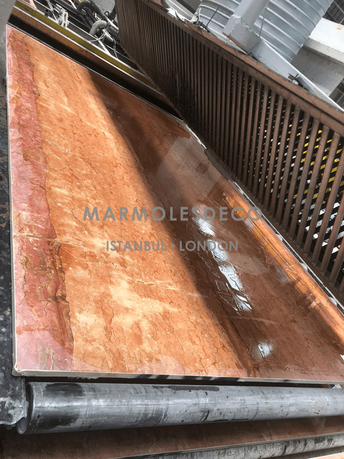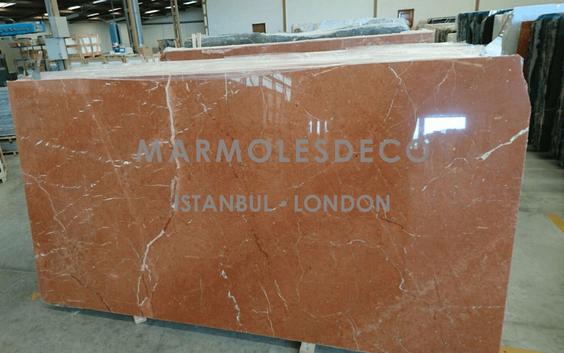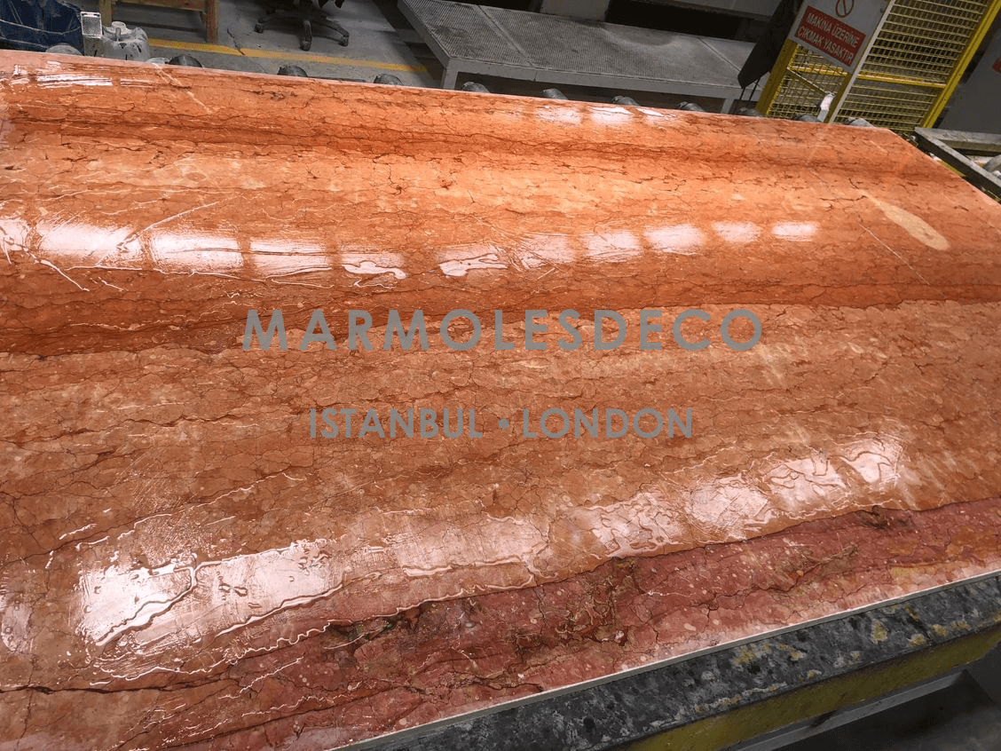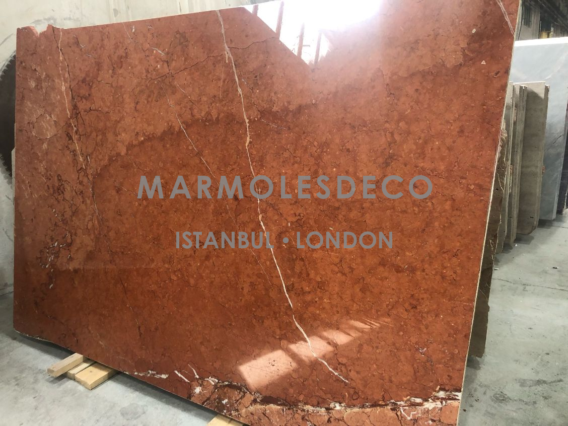 Rojo Alicante marble is a stunning gem, radiating timeless elegance with its vibrant red hue and intricate veining, adding a bold and rich character to any space.