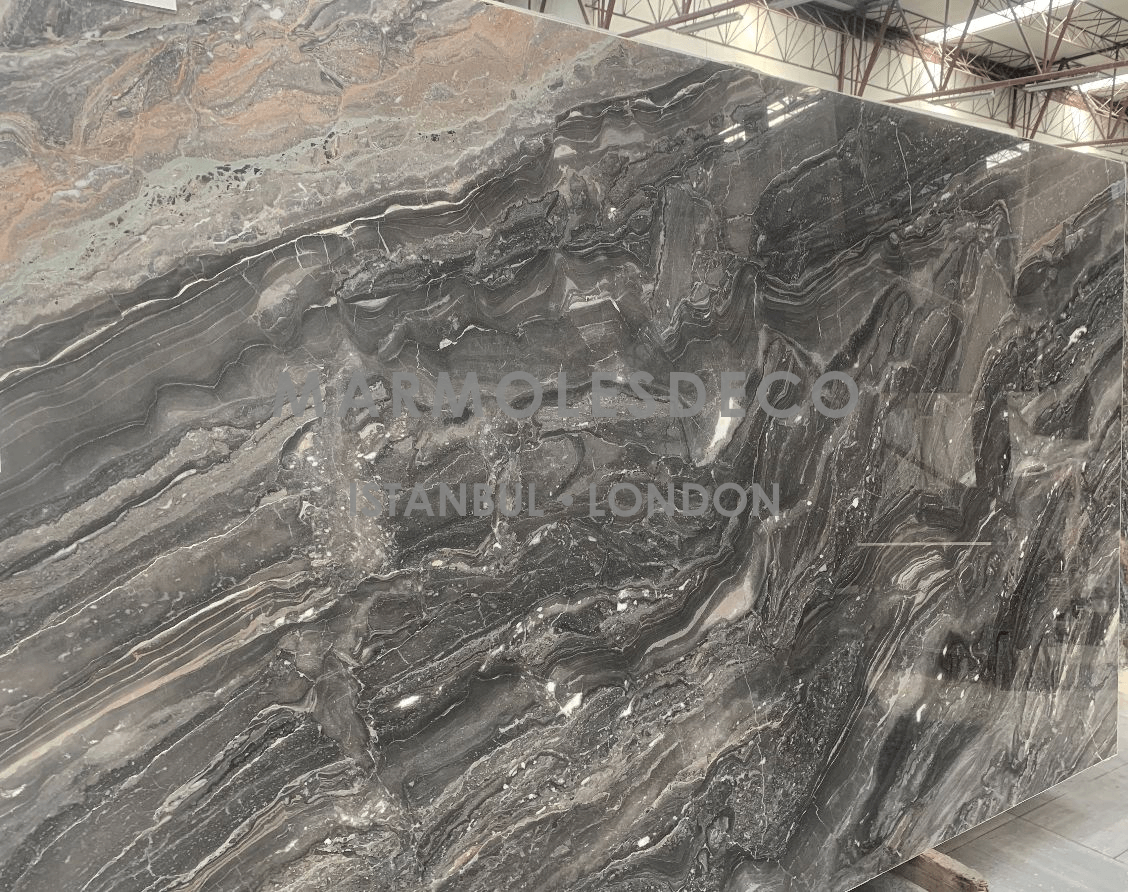 Geologically, Silver Fantasy marble is a metamorphic rock formed through the recrystallization of limestone under intense heat and pressure, resulting in its distinct veining patterns and silver-gray coloration.
